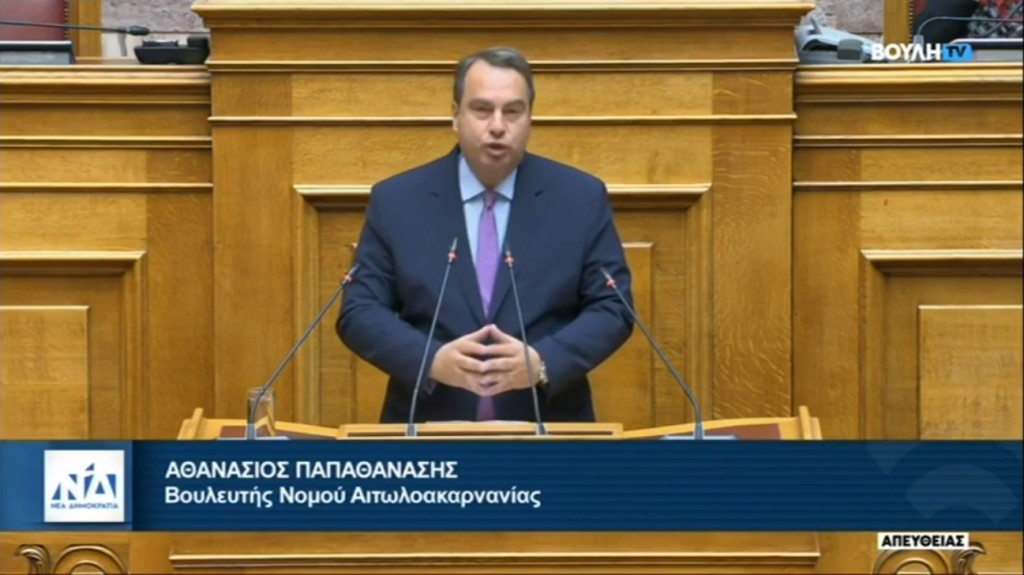 Στην Ολομέλεια της Βουλής τοποθετήθηκε ο Βουλευτής Αιτωλοακαρνανίας της Νέας Δημοκρατίας Θανάσης Παπαθανάσης, στη συζήτηση του νομοσχεδίου του Υπουργείου Οικονομικών για τη νέα δέσμη φορολογικών μέτρων που ενισχύουν στην πράξη την ελληνική οικογένεια, τη μεσαία τάξη, τους νέους και την Περιφέρεια.