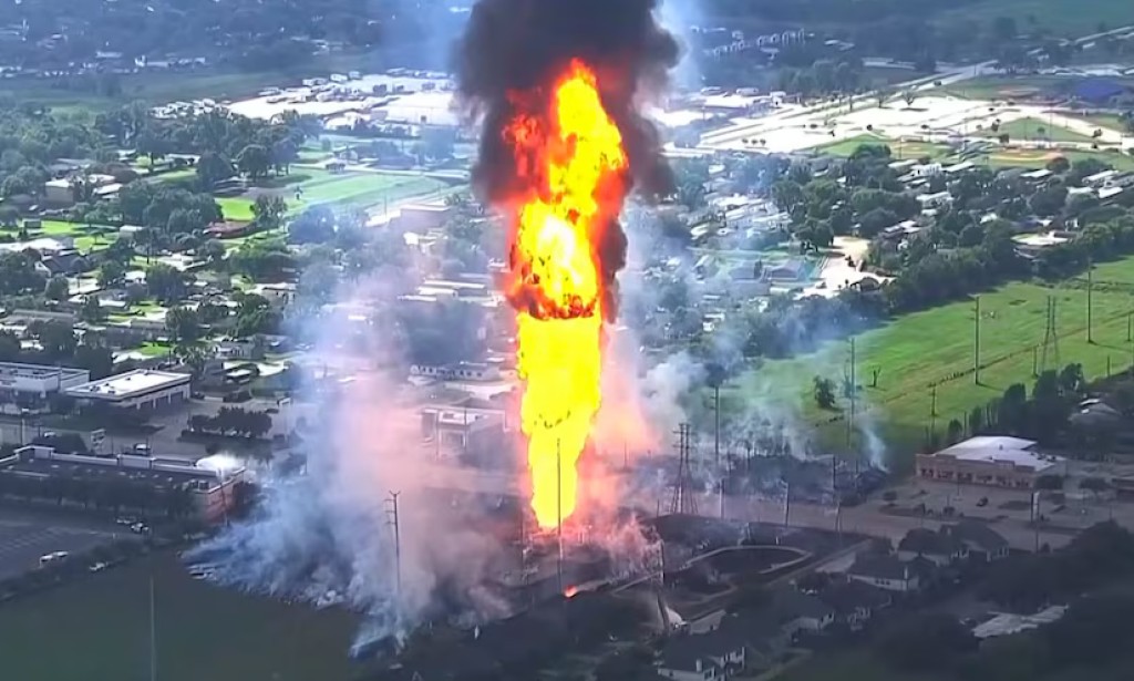 Επλήγη «από άγνωστο αντικείμενο» μετά από μια μεγάλη πυρκαγιά σε δεξαμενή που επίσης ξέσπασε στο χημικό εργοστάσιο Bayport Choate της Lyondell Basell.