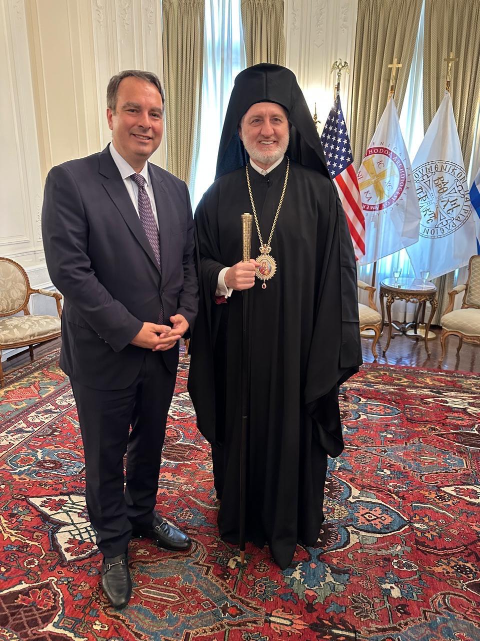 Ακολούθησε συνάντηση με τον Αρχιεπίσκοπο Αμερικής κ.κ. Ελπιδοφόρο στην Ιερά Αρχιεπισκοπή Αμερικής και, στη συνέχεια, Δοξολογία στον Ιερό Ναό του Αγίου Νικολάου στο World Trade Center, παρουσία εκπροσώπων της Εκκλησίας, της Ομογένειας και θεσμικών φορέων. Το ίδιο διάστημα πραγματοποιήθηκε μικρή παρέλαση με τη συμμετοχή αγήματος της Προεδρικής Φρουράς και η έπαρση της ελληνικής σημαίας στο Bowling Green / Wall Street, όπου ο κ. Παπαθανάσης απηύθυνε χαιρετισμό, υπογραμμίζοντας ότι εκεί, στην καρδιά της Νέας Υόρκης, «χτυπά δυνατά η καρδιά της Ελλάδας και του Μεσολογγίου».