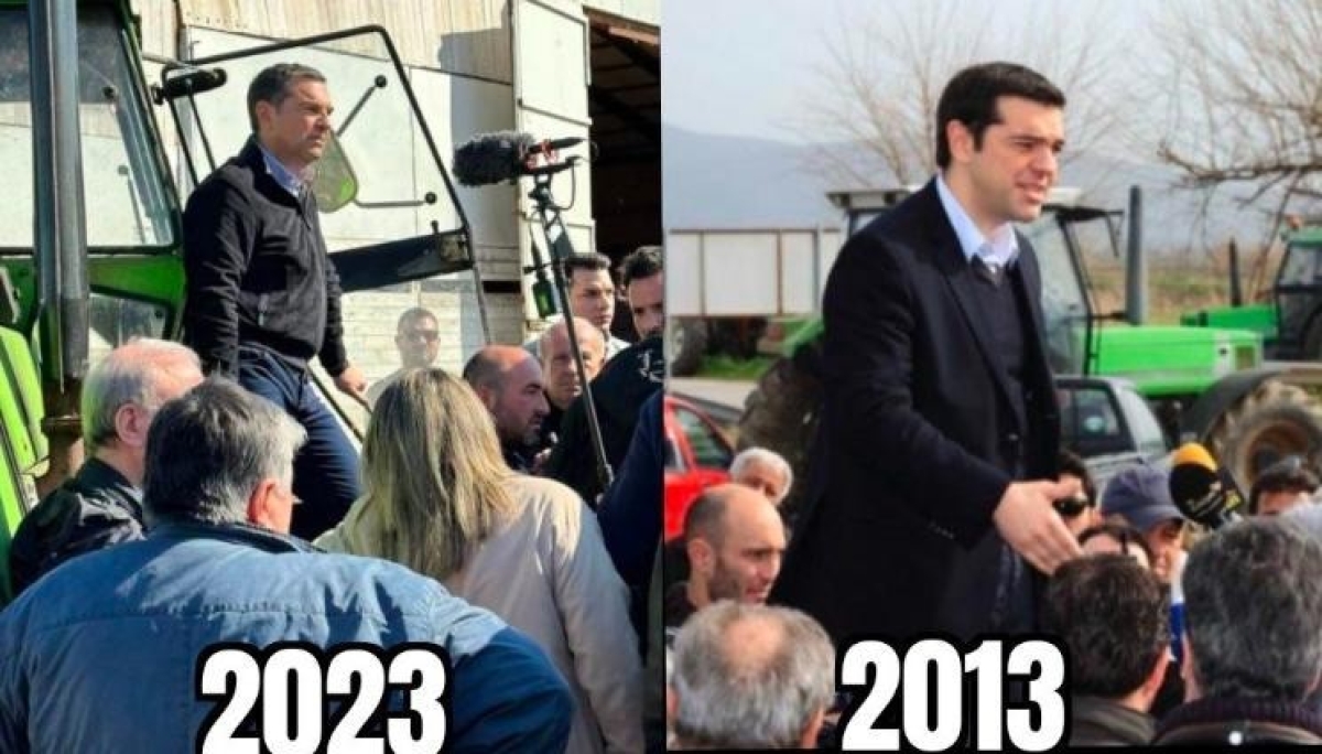 Με δυο φωτογραφίες του Αλέξη Τσίπρα με τους παραγωγούς – μία από τον Φεβρουάριο του 2013 και μια σημερινή – και τον χαρακτηριστικό στίχο του Μανώλη Ρασούλη «όλα τριγύρω αλλάζουνε, κι όλα τα ίδια μένουν» από τραγούδι του Νίκου Παπάζογλου, ο Γιάννης Οικονόμου «απάντησε» στις σημερινές προεκλογικές εξαγγελίες του προέδρου του ΣΥΡΙΖΑ σε κτηνοτρόφους και αγρότες, κατά την παρουσία του στη Θεσσαλία.